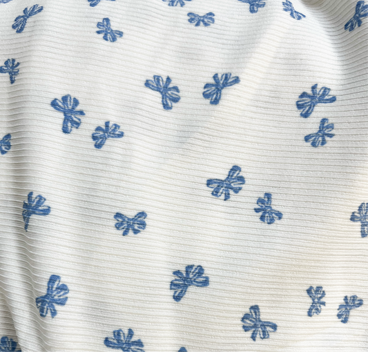 Knit Blue Ribbon Bow Scrunchie
