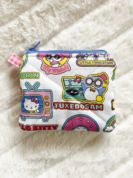 Small Quilted Zipper Pouch - Kawaii Friends - no loop